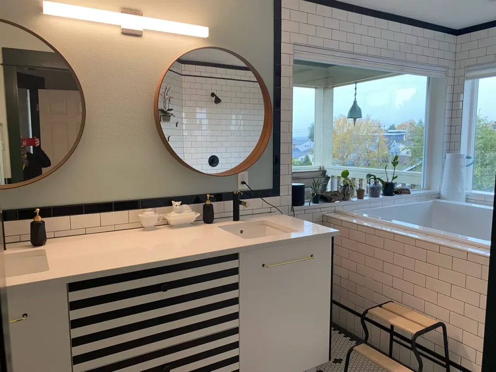 Your bathroom should be a place of comfort and relaxation, providing a personal retreat within your own home. Whether you’re looking to make the most of your current bathroom space or want to add a new bathroom as part of a basement remodel, AmyWorks is ready to help. Our crew has the experience and expertise to deliver professional bathroom remodeling, kitchen renovation, ADU and DADU construction services that will bring your unique vision to life and transform your home!